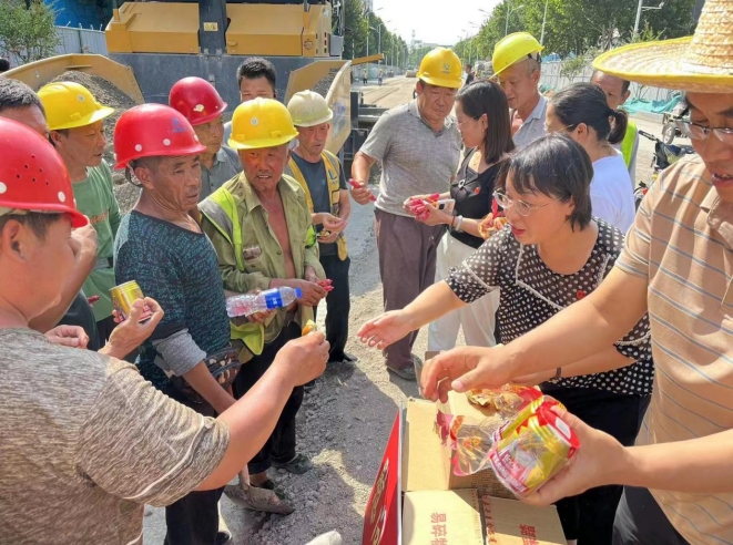 走進(jìn)工地現(xiàn)場,為一線職工發(fā)放面包、香腸、飲料等,了解項目部施工進(jìn)展及項目人員生產(chǎn)生活、勞動保護(hù)、防暑降溫措施等情況,切實為職工創(chuàng)造一個安全、健康的工作環(huán)境。